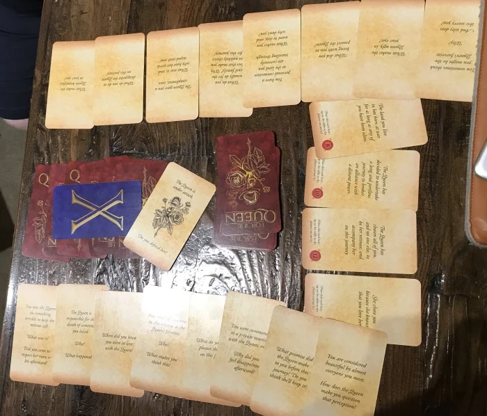 As a GM, this was magic. I no longer had to create some generic adventure, and didn’t have to create everything from scratch. Instead we all collaboratively came up with a unique set of elements that I could react to, by making questions. And then they all answered the questions, so that again I had something I could react to: In this case, their answers… and that spawned adventure prompts and directions.